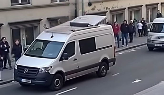 Có thể là hình ảnh về 11 người, xe van, đường phố và văn bản