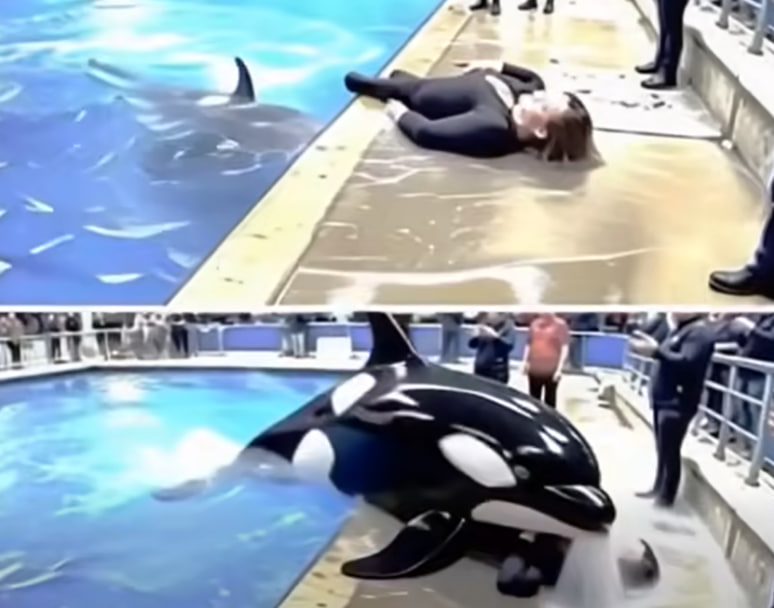 What followed was a prolonged and heartbreaking incident that lasted for approximately 45 minutes. Witnesses reported that Tilikum thrashed Dawn around the pool, with SeaWorld staff desperately attempting to distract the orca by throwing food and nets into the water. Despite these efforts, Tilikum did not release his grip on Dawn, and she ultimately became unresponsive.