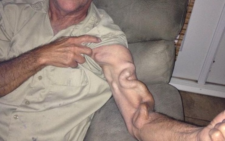 His arm muscles appeared twisted and swollen in bizarre shapes, as if his skin was rippling with knots and bulges. He pointed at his arm in disbelief, even asking a family member to take a photo. What should have been an everyday stretch became a scene that looked more like a science-fiction movie.