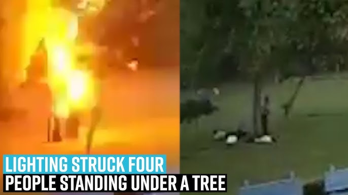 Eyewitnesses at the scene say the storm rolled in quickly. As rain began to fall, the four men—believed to be friends enjoying a walk—took cover under a large tree in the middle of the park. Moments later, a bright flash and deafening crack stunned the area as a bolt of lightning made direct contact with the tree or ground nearby.