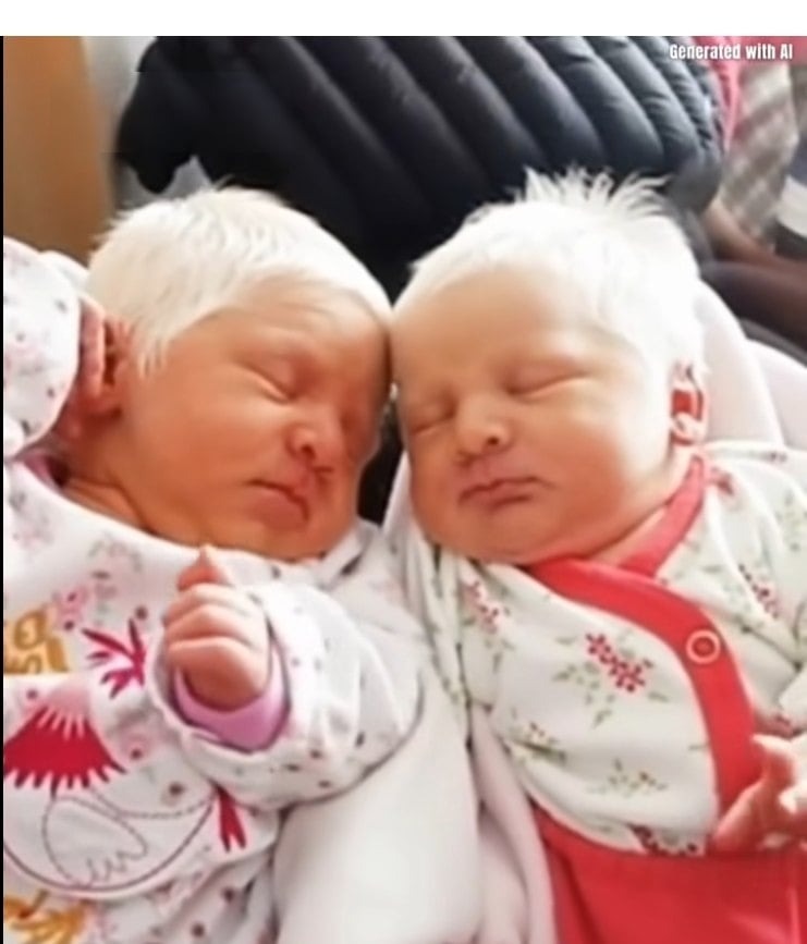 The moment doctors saw them, everyone in the delivery room realized they were witnessing something extraordinary. Both girls were born with snow-white hair — a result of a rare genetic condition known as albinism, which affects the production of melanin in the skin, hair, and eyes.