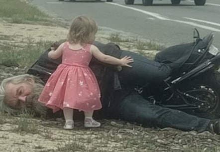 That is when they discovered a man who had been injured in a motorcycle accident down a grassy slope. He was conscious but struggling. Helen immediately called emergency services while Sophie hurried toward him, showing a surprising calmness for her age.